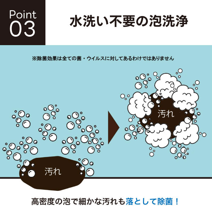クリーニング後、濡らして絞ったタオルで泡をよく拭き取って下さい。